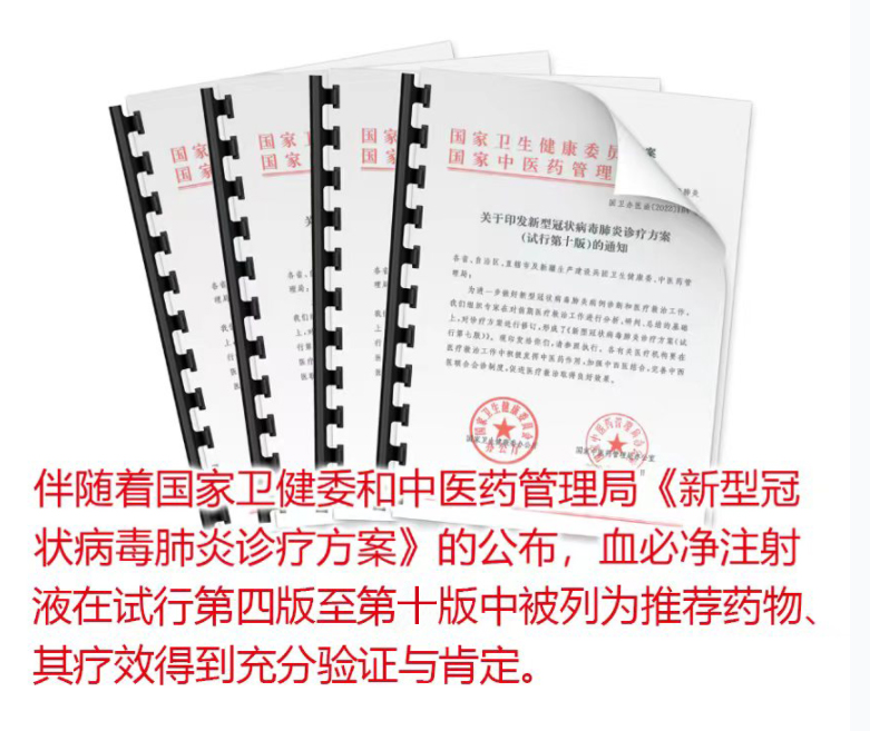 - йڷÎÑ×ÒßÇéʱ´ú£¬»ùÓÚѪ±Ø¾»¸ßÖÊÁ¿ÑÖ¤Ö¤¾Ý£¬±»Ò»Á¬ÄÉÈë¹ú¼ÒÎÀ½¡Î¯ºÍ¹ú¼ÒÖÐÒ½Ò©¹ÜÀí¾ÖÐû²¼µÄ¡¶Ð¹ڷÎÑ×ÕïÁƼƻ®£¨ÊÔÐеÚËÄ¡ªµÚÊ®°æ£©¡·¡£×÷ΪÖÐÒ½ºÍÎ÷Ò½ÖÎÁƼƻ®ÅäºÏÍÆ¼öµÄÒ©ÎÓÃÓÚÖÎÁÆÖØÐÍ£¨Òß¶¾±Õ·Î¡¢ÆøÓªÁ½ìÜ£©ºÍÎ£ÖØÐÍ£¨ÄÚ±ÕÍâÍÑ£©²¡Àý¡£Îª¿¹»÷ÒßÇéʩչÁËÖ÷Òª×÷Ó᣹ú¼ÒÖÐÒ½Ò©¹ÜÀí¾Ö½«Ñª±Ø¾»ÄÉÈëÖÐÒ½Ò©·ÀÖÎйڷÎÑ×ÓÐÓÃÒ©ÎïµÄ¡°ÈýÒ©Èý·½¡±¡£